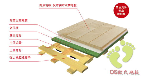 體育運(yùn)動(dòng)木地板—三層龍骨專業(yè)舞蹈型結(jié)構(gòu)是我廠為迎合**體育地板行業(yè)的發(fā)展趨勢(shì)及時(shí)研發(fā)的專業(yè)舞臺(tái)木地板系統(tǒng),它不但堅(jiān)固耐用而且彈性十足,運(yùn)動(dòng)性能完全達(dá)到DIN標(biāo)準(zhǔn)的要求。并且具備舞臺(tái)木地板所有功能:
